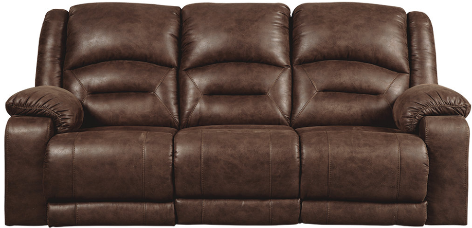 The Carrarse power reclining sofa in teak brown really is designed to caress you in comfort from head to toe. Offering the warm feel of fabric and the cool look of leather, this power reclining sofa includes Easy View™ power adjustable headrests and power lumbar support that lets you fully recline and still have a primo view of the TV.Read More