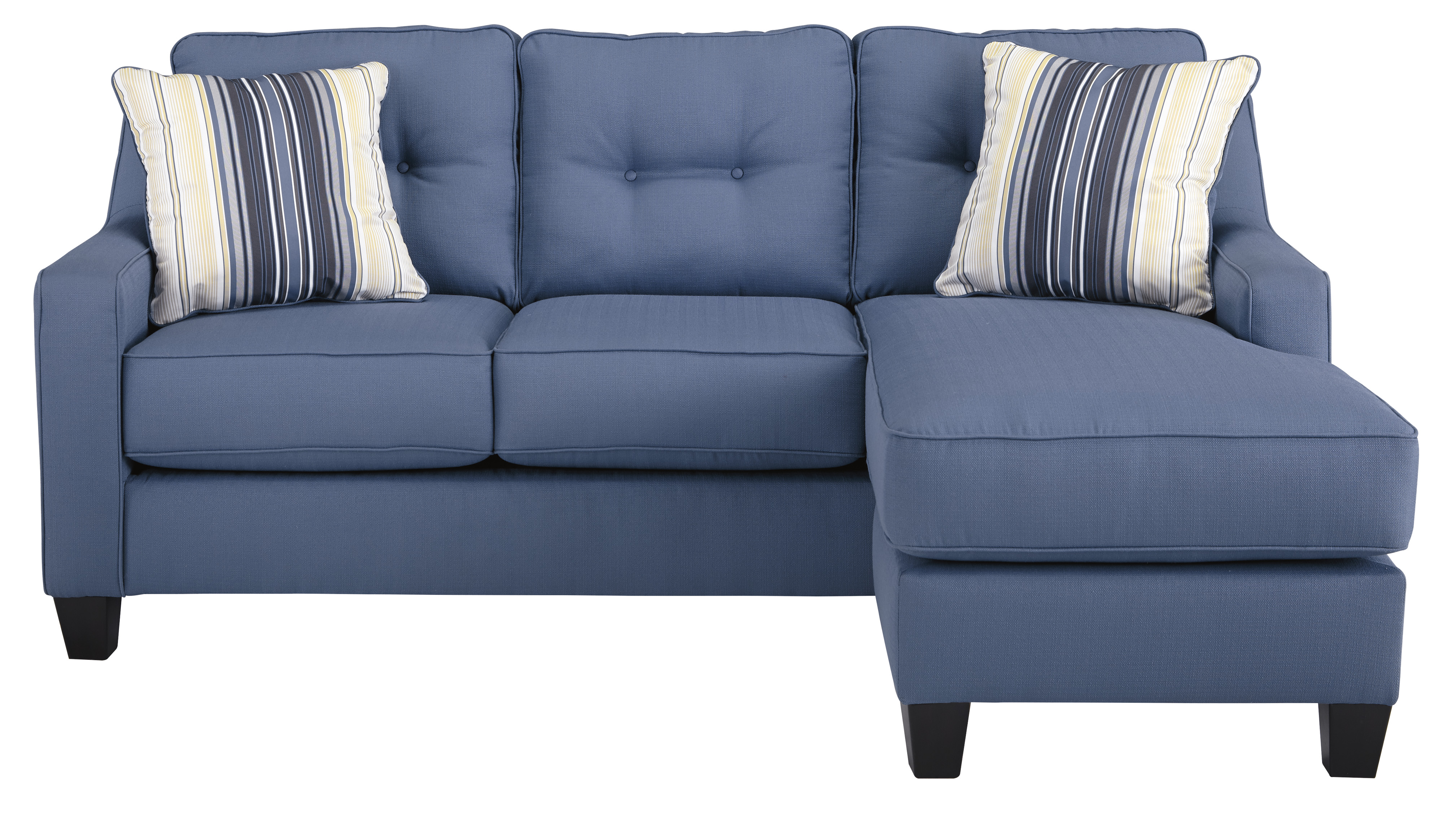 Capture the sofa chaise that will withstand everyday mayhem; Depend on the blue Aldie Nuvella® sofa chaise. Let your troubles fall away and lean back into the button-tufted back cushions and lush poly-fill pillows. Place the chaise on either side, with the reversible seat cushion and moveable ottoman, and lounge in the supreme spot. Experience the supple yet exquisitely durable Nuvella® fabric that protects against the damage of little hands and paws. Preserve that new-couch look, no matter what gets thrown at it.