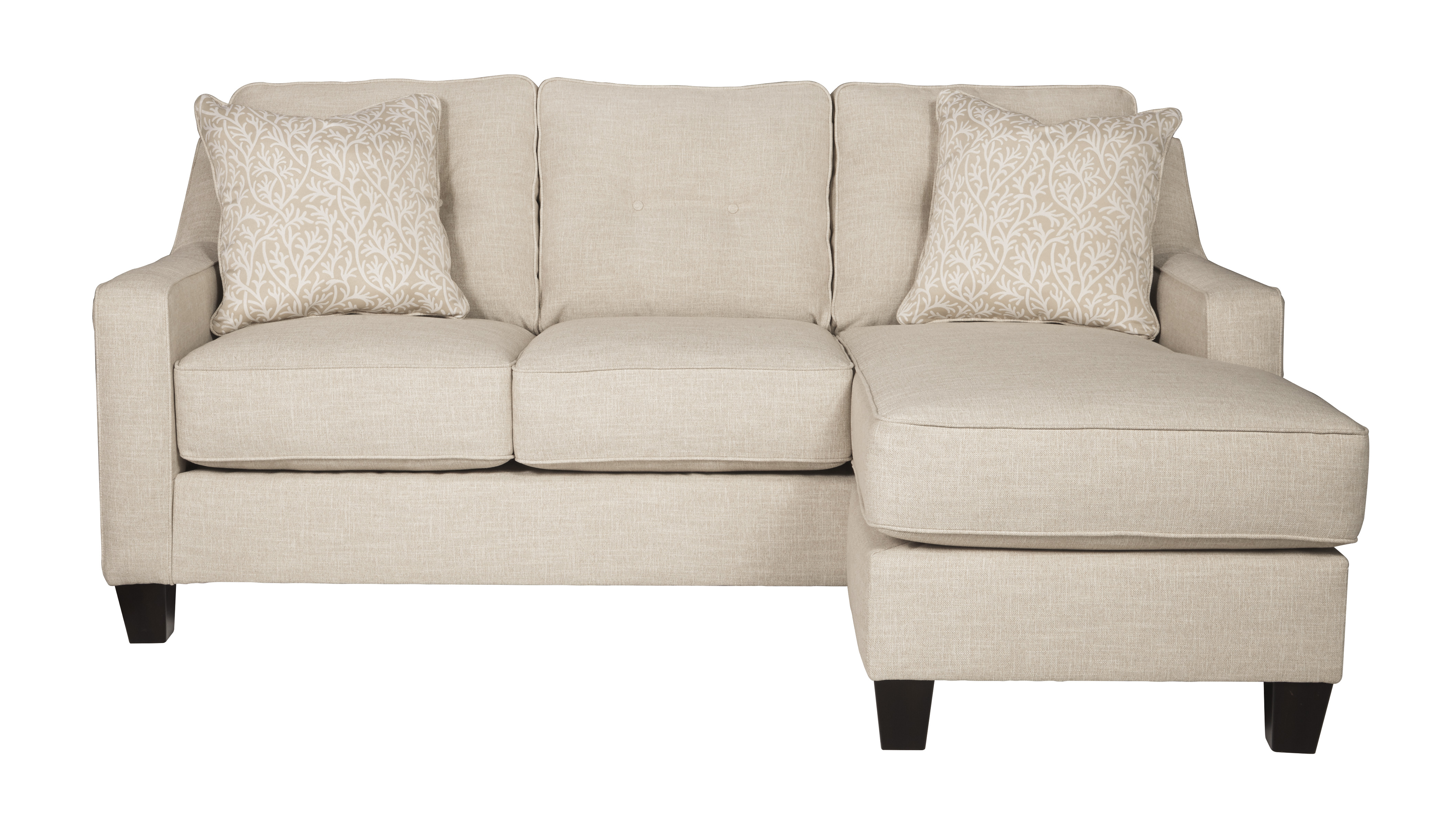 Daily battles over the furniture with kiddos and fur babies is a thing of the past with the sand-colored Aldie Nuvella® sofa chaise. Leave your worries behind and sink into the button-tufted back cushions and lush poly-fill pillows. Effortlessly switch the chaise to either side with the reversible seat cushion and moveable ottoman, and laze in the primo spot. Feel the supple yet wonderfully durable Nuvella® fabric shield against the damage wreaked by little hands and paws. Withstand the daily struggle and uphold that new-couch look with this sofa chaise.