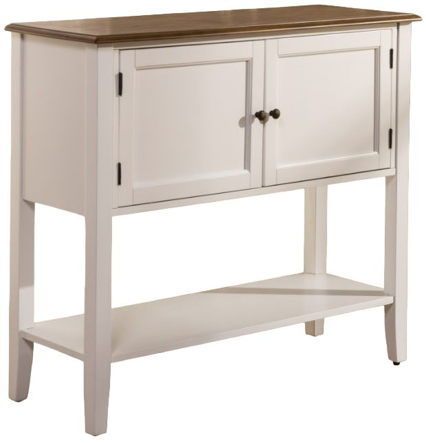 This solid wood server offers ample storage space behind two beautifully framed cabinet doors boasting antique-style starburst knobs as well as a lower open shelf for those items you wish to display. This two-tone appeal makes it a classic and welcoming presence in your room.Read More