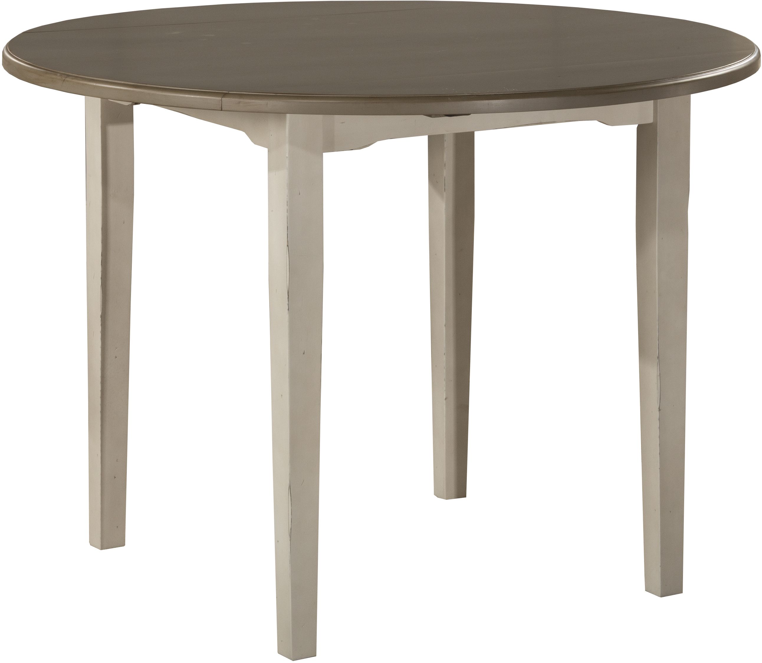 Hillsdale Furniture Clarion Distressed Gray Top with Sea White Base Round Drop Leaf Dining Table with Straight Legs .