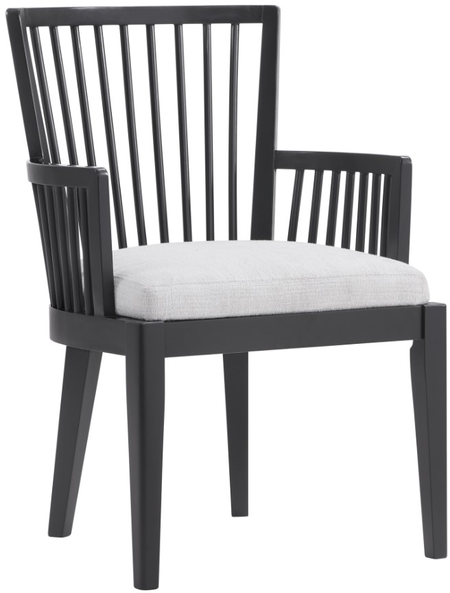 The Hillsdale Furniture Portsmouth 2-Piece Dining Arm Chair Set features crafted from wood in a black finish, these arm dining chairs set themselves apart with a spindle-back design that curves just so to make them the perfect place to relax over a meal or glass of wine. And with their naturally toned upholstered seats, get a hint of coastal in these modern farmhouse pieces.Read More