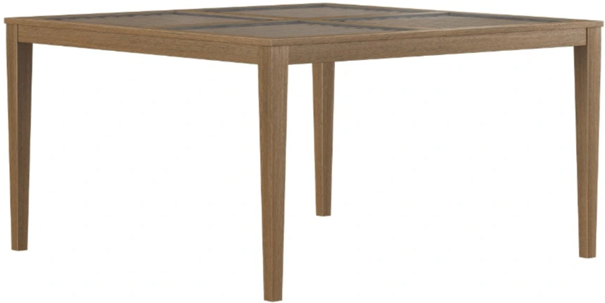 Industrial modern square dining table boasts a mixed-media design