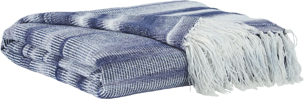 The Agustin throw gives new life to tie dye design. Woven fabric is saturated with blissful blue hues. Fringe adds a fashionable touch. When you’re not warming up, use it to accessorize your furniture.