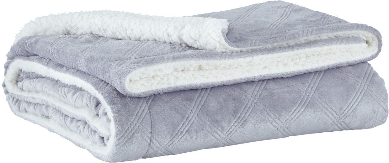 Woven diamond design in gray is backed with incredibly soft off-white sherpa faux wool. Machine washability makes this an easy-to-clean style.Read More