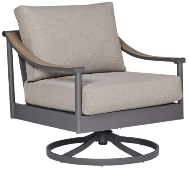 A refined marriage of style and durability, this outdoor swivel rocker lounge chair adds contemporary flair to your porch or patio. Wood tones and shades of gray lend a versatile, neutral appeal. And this chair is built to last, thanks to its rust-resistant frame and cleanable, UV-resistant fabric.Read More